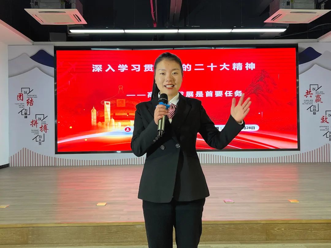 本次活動由“8090 00”集團公司青年宣講團成員邱麗萍和周睿兩位成員宣講。邱麗萍以《積極推進企業高質量發展 全力打造先進裝備制造業標桿——黨的二十大精神宣講》為題,通過文字視頻形式,全面生動闡述了高質量發展的理念、途徑和高質量發展下中國社會中現代化的成就,并結合公司實際,展現出公司踔厲奮發、勇毅前行的堅定信心和勇氣。周睿以《深入學習二十大精神 走好新時代趕考路》為題,從實施創新驅動發展、人才強國戰略和推動高質量發展等角度入手,結合公司實際和自身體會認識,宣講年輕人要銘記“來時的路”,走好“腳下的路”,堅定“未來的路”,為公司的發展貢獻火熱青春和智慧力量。